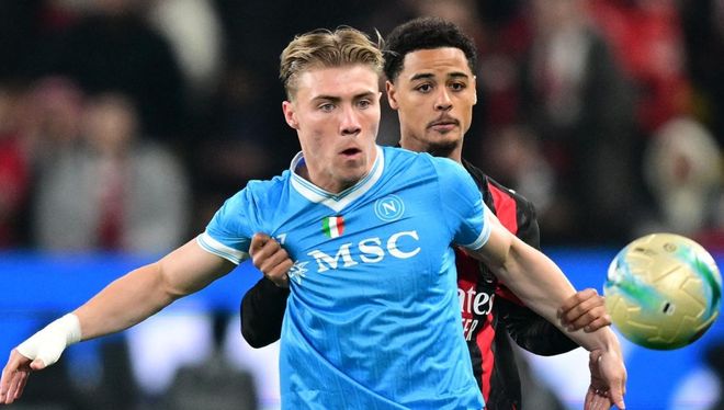 意大利超级杯半决赛展开争夺,AC米兰对阵那不勒斯。本场比赛开场不久AC米兰就创造出机会。帕夫洛维奇在禁区内倒钩射门,踢得有点偏。奇克跟上射门,结果被门将挡了出去。第16分钟,萨勒马克尔斯在禁区中路的凌空射门踢高了。6分钟后,埃尔马斯在禁区左侧低射远角,稍稍偏了一点。第39分钟,霍伊伦在禁区左侧送出横传。迈尼昂扑球脱手。内雷斯轻松补射空门得手。半场结束,AC米兰0-1落后。